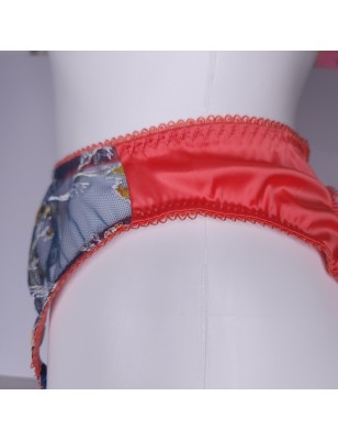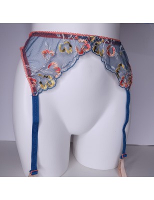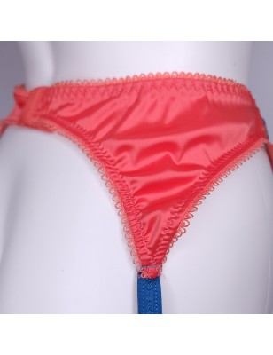 Sissy garter belt matching orange and blue floral lingerie for men in regular and plus sizes. Crossdressing in vibrant colors and highest quality soft fabrics!