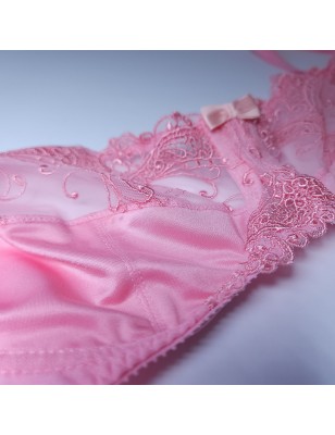 Slip into this delicate light-pink sissy bra and feel how perfectly it’s made for you. The AA cups are crafted from soft, smooth nylon and sheer lace, giving you a feminine look with gentle coverage.