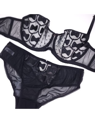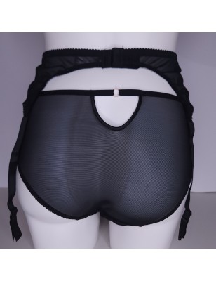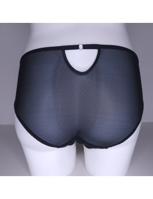 Black mesh bow tie polka dot thongs, panties and maxi brief for crossdressing men. Match with classy AA cup bra for men.