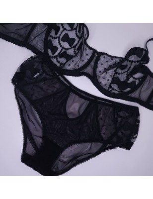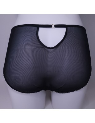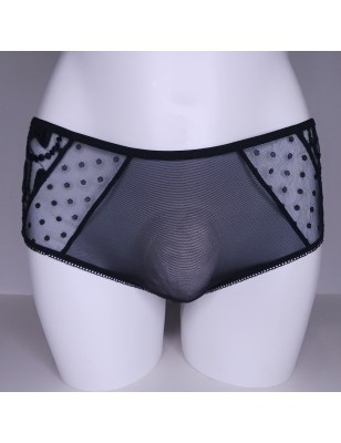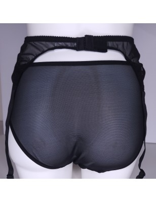Black sheer sissy maxi brief for plus size men needing more (see-through) coverage. Match with underwire or no-underwire bra and a garter belt for men.
