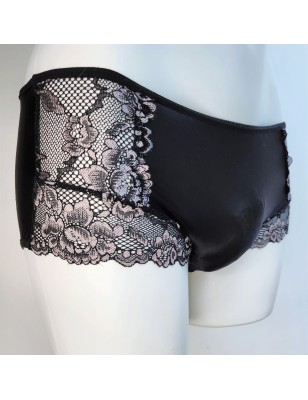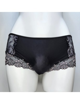Black lace sissy boxer panties for men - soft, stretchy, and made to thrill. Handmade with high-quality nylon lace, they hug every curve, feel smooth to the touch, and deliver both comfort and desire.
