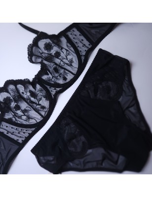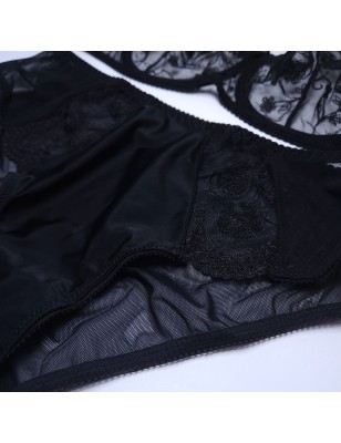 Make it a beautiful lingerie set, match with ultra sheer black lace balconette bra for men.